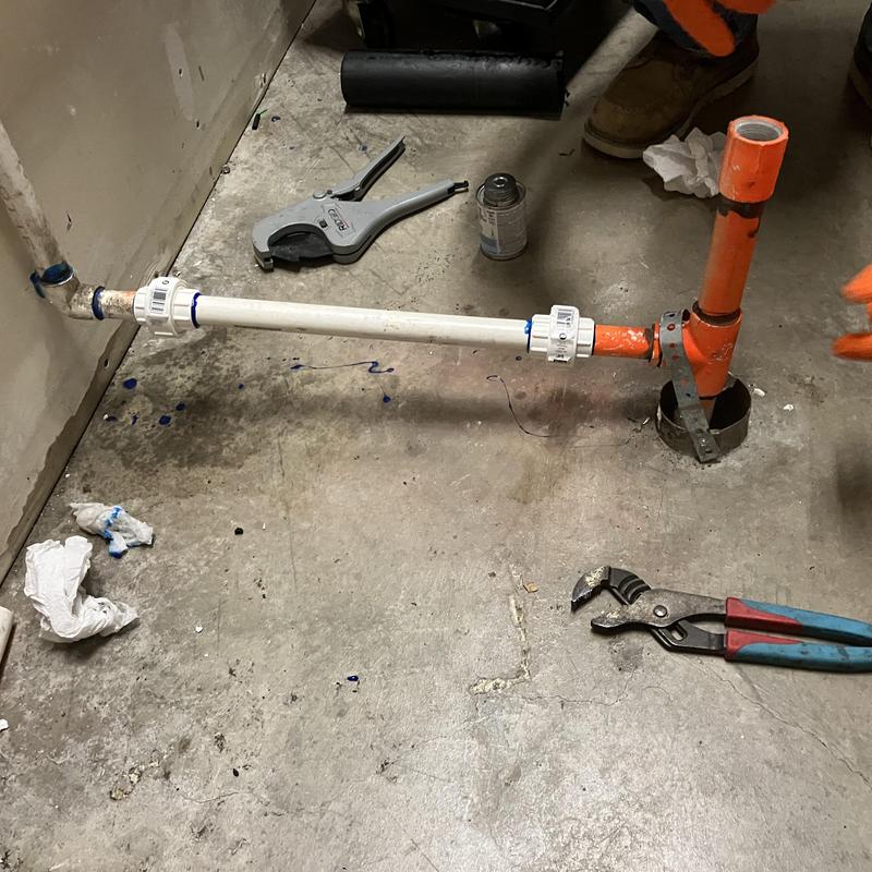Westside Plumbing repaired a one-inch PVC drain under a quick rinse sink at a commercial property in Fort Worth, Texas. The team reconnected the separated drain at a 90-degree fitting by gluing the pipes back together to restore function.